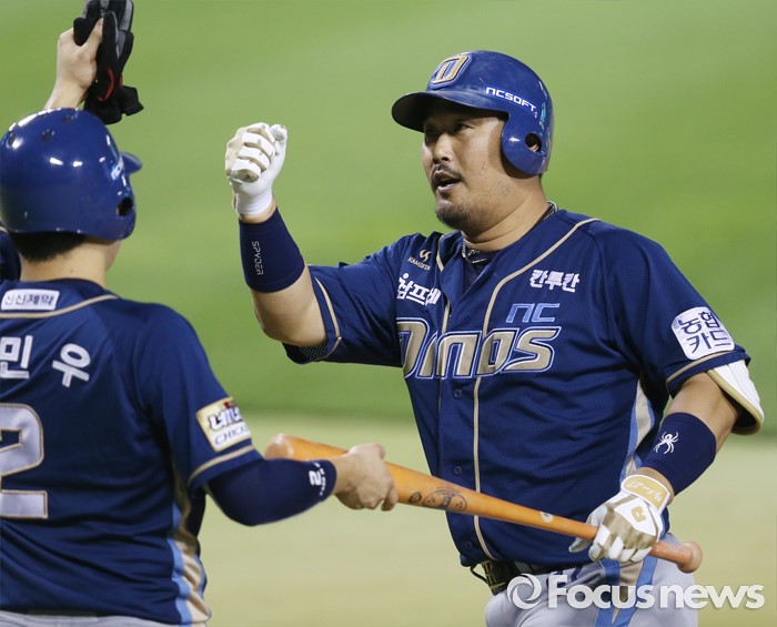 (잠실=포커스뉴스) 프로야구 NC가 중심타선의 힘으로 5연패에서 벗어났다. 나성범-테임즈-이호준이 홈런 포함 3안타 8타점 5득점을 합작하며 승리를 이끌었다. 이호준이 홀로 5타점으로 빛났다.