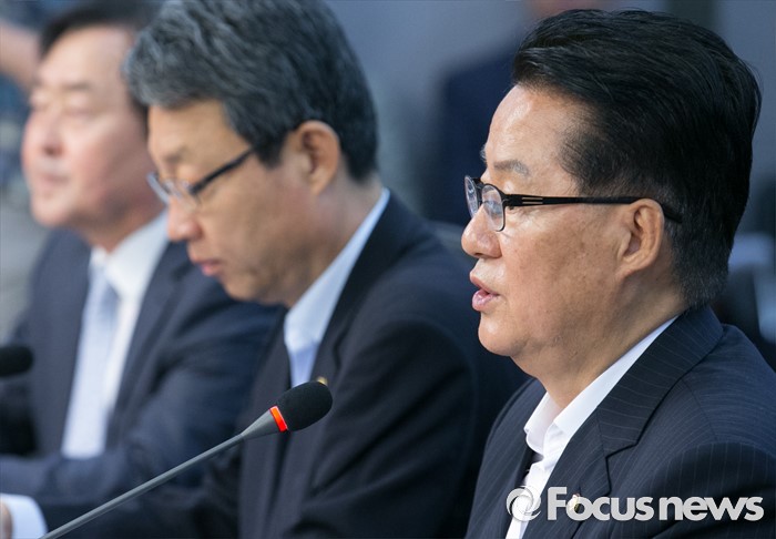(서울=포커스뉴스) 30일 오전 서울 여의도 국회 의원회관에서 열린 국민의당 의원총회에 참석한 박지원 비대위원장이 모두발언을 하고 있다.
