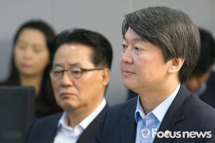 (서울=포커스뉴스) 30일 오전 서울 여의도 국회 의원회관에서 열린 국민의당 22차 집중역량강화 워크숍에 참석한 안철수(오른쪽) 전 대표와 박지원 비대위원장이 의원들의 발표를 듣고 있다.