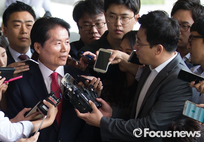 (서울=포커스뉴스) 농협중앙회장 부정선거의혹 관련 김병원 농협 회장이 조사 받기 위해 피의자 신분으로 30일 오전 서울 서초구 서울중앙지방검찰청으로 들어서며 취재진 질문에 답하고 있다.