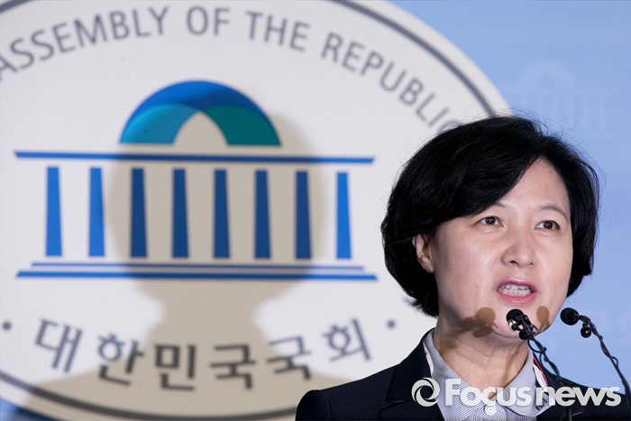 (서울=포커스뉴스) 전당대회 출마를 선언한 추미애 더불어민주당 의원이 30일 오전 서울 여의도 국회 정론관에서 새만금 공항 건설 공약과 관련 기자회견을 하고 있다.