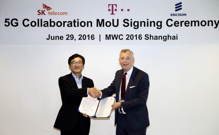 SK텔레콤은 29일 MWC 상하이에서 독일의 도이치텔레콤(DT), 장비 제조사 에릭슨(Ericsson) 등과 함께 5G 공동 연구를 위한 3자 협력 MOU를 체결했다.