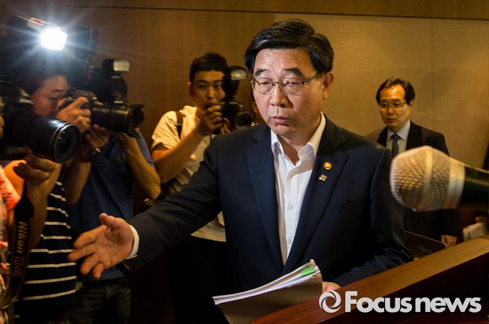(서울=포커스뉴스) 30일 오전 서울 중구 프레스센터에서 이기권 고용노동부 장관이 조선업 특별고용지원업종 지정안 심의결과를 발표하기 위해 연단으로 향하고 있다.