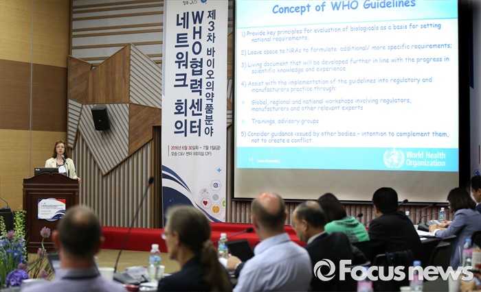 (청주=포커스뉴스) 30일 오전 충북 청주 오송 C&V 센터에서 열린 제3차 바이오의약품분야 WHO협력센터 네트워크 회의에서 이바나 네조빅(WHO Dr. Ivana Knezevic) WHO본부 전문가가 WHO의 나아갈 방향이란 주제로 기조연설을 하고 있다.