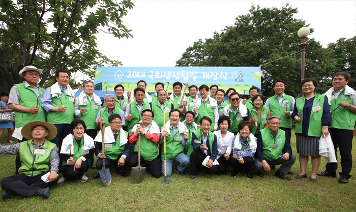 (서울=포커스뉴스) 정세균 국회의장이 30일 오전 서울 여의도 국회에서 열린 20대 국회 '생생텃밭' 개장식에 참석해 의원 및 참석자들과 기념촬영을 하고 있다. <사진제공=국회>