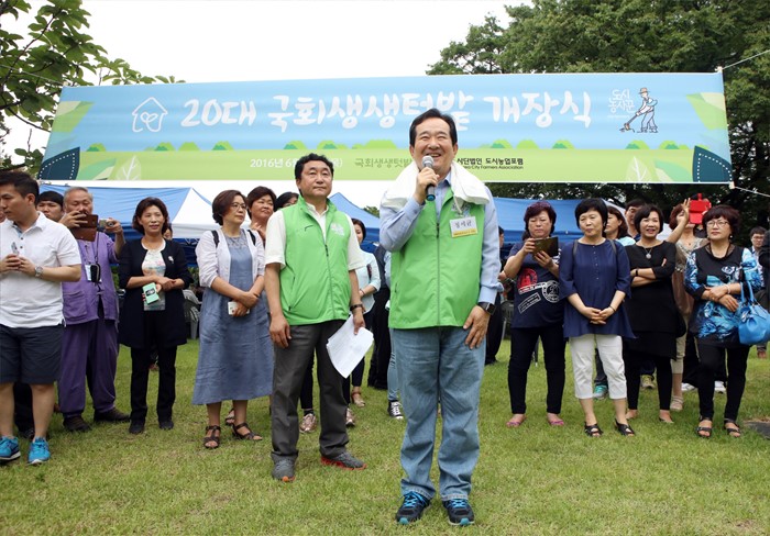 (서울=포커스뉴스) 정세균 국회의장이 30일 오전 서울 여의도 국회에서 열린 20대 국회 '생생텃밭' 개장식에 참석해 인사말을 하고 있다. <사진제공=국회>