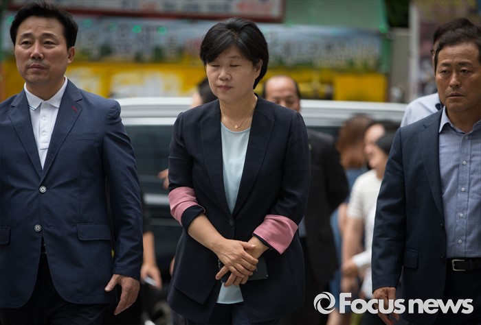 그는 국회를 빠져나가며 기자들에게 당무감사원에 어떤 소명을 했느냐는 질문에 "전반적인 이야기에 대해서 이야기를 했다"며 "남편이 판사들과의 회식 자리에 배석했다든지 하는 부분은 사실이 아니라고 말씀드렸다"고 밝혔다.