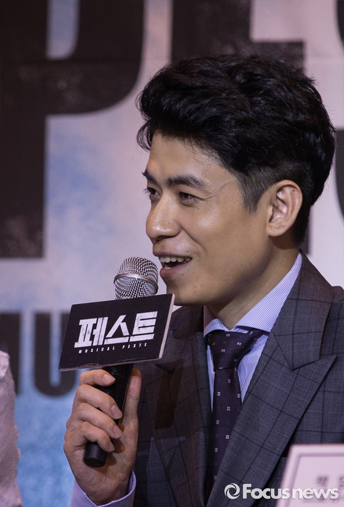 (서울=포커스뉴스) 30일 오후 서울 성동구 디노체 컨벤션에서 열린 뮤지컬 '페스트' 제작발표회 참석한 김민석 기획 제작 총괄이 인사말을 하고 있다.