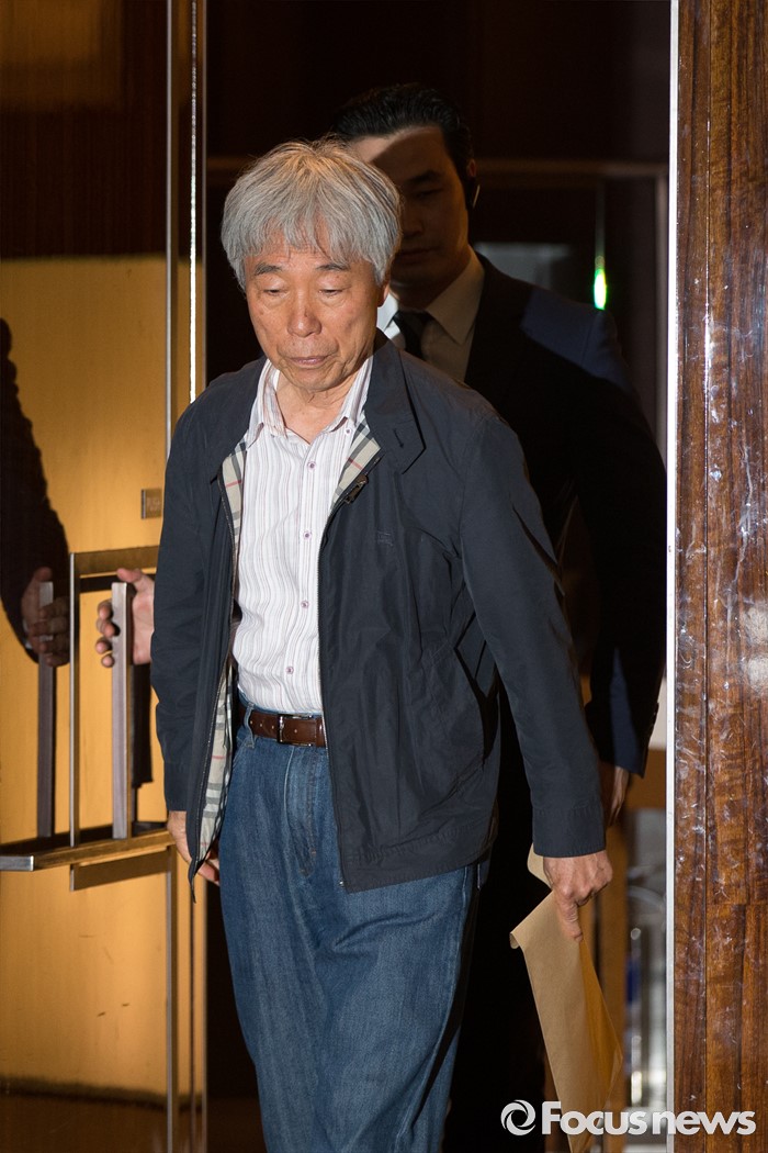 (서울=포커스뉴스) 위작 논란에 휩싸인 이우환 화백이 30일 오후 서울 중구 웨스틴조선 호텔에서 기자회견장으로 들어서고 있다.