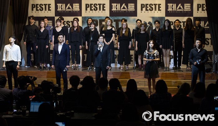(서울=포커스뉴스) 30일 오후 서울 성동구 디노체 컨벤션에서 열린 뮤지컬 '페스트' 제작발표회 참석한 출연진이 뮤지컬넘버를 시연하고 있다.