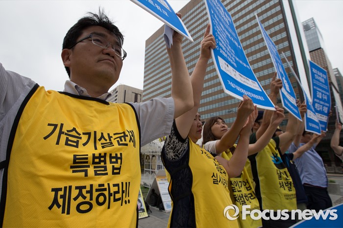 (서울=포커스뉴스) 30일 오후 서울 종로구 광화문광장에서 가습기살균제참사전국네트워크 회원들이 '제2의 옥시'를 막기 위한 서명운동 캠페인을 벌이고 있다.