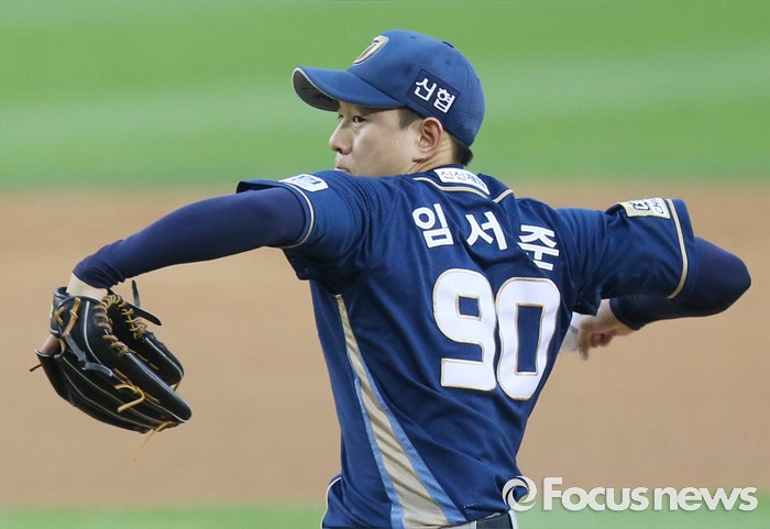 | △ 프로 무대에서 첫 투구하는 NC 임서준 |