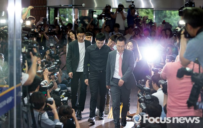 (서울=포커스뉴스) 성폭행 혐의로 4명의 여성에게 연이어 피소된 가수 겸 배우 박유천이 30일 오후 서울 강남경찰서로 출석하고 있다.