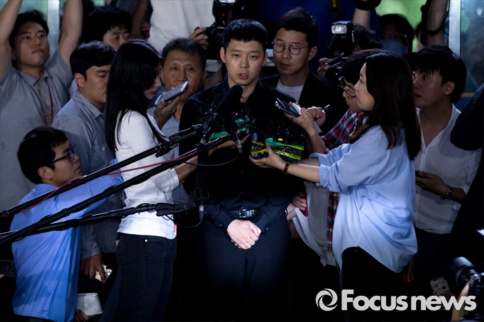 (서울=포커스뉴스) 성폭행 혐의로 4명의 여성에게 연이어 피소된 가수 겸 배우 박유천이 30일 오후 서울 강남경찰서로 출석하고 있다.