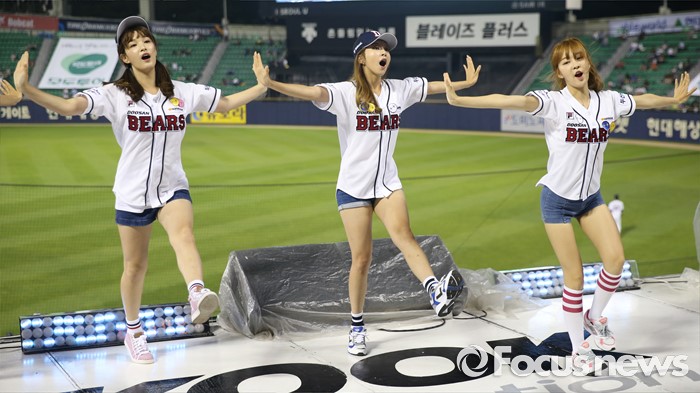 (서울=포커스뉴스) 30일 서울 잠실구장에서 열린 2016 프로야구 NC-두산 경기에서 인기 걸그룹 '라붐'이 경기전 시구에 이어 클리닝타임에 응원단상에 올라 귀엽고 깜찍한 율동으로 관중들에게 한 여름의 더위를 식혀주는 깜짝 공연을 펼쳤다.