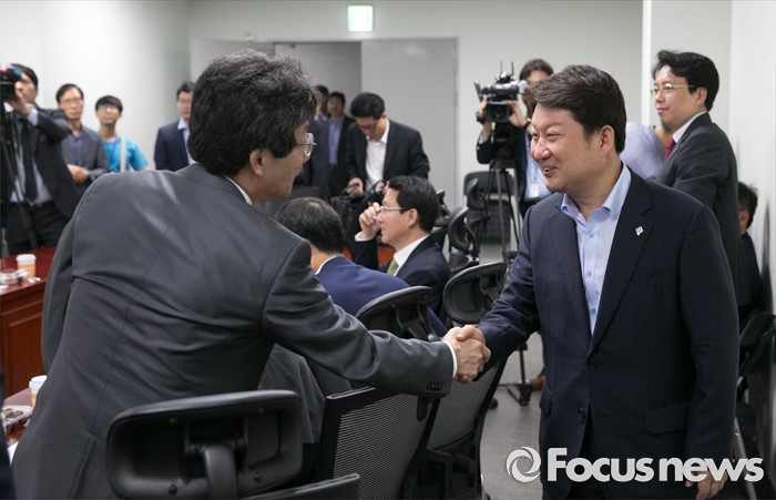 (서울=포커스뉴스) 권영진(오른쪽) 대구시장이 1일 오전 서울 여의도 국회 의원회관에서 영남권 신공항 백지화 및 대구 공군비행장 이전과 존치문제 등 논의를 위해 열린 새누리당 대구지역 의원들과의 간담회에 참석해 유승민 의원과 인사하고 있다.