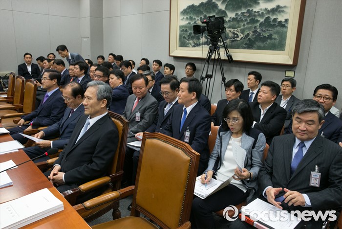 (서울=포커스뉴스) 1일 오전 서울 여의도 국회에서 열린 운영위원회 전체회의에 참석한 이원종 대통령비서실장, 김관진 국가안보실장 등 청와대 관계자들이 자리하고 있다.