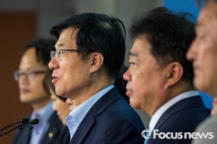 (서울=포커스뉴스) 1일 오후 서울 여의도 국회에서 더불어민주당 공정언론 특위 민주주의회복TF 소속 의원 및 국회 미래창조과학방송통신위원회 소속 의원들이 이정현 새누리당 의원의 청와대 홍보수석 재임시 KBS 보도 개입과 관련해 브리핑 하고 있다.