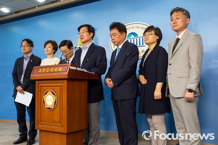 (서울=포커스뉴스) 1일 오후 서울 여의도 국회에서 더불어민주당 공정언론 특위 민주주의회복TF 소속 의원 및 국회 미래창조과학방송통신위원회 소속 의원들이 이정현 새누리당 의원의 청와대 홍보수석 재임시 KBS 보도 개입과 관련해 브리핑 하고 있다.