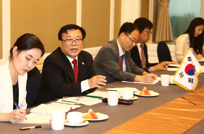 (서울=포커스뉴스) 이동필 농림축산식품부 장관이 1일 서울 여의도 국회의사당에서 세르기 라린 '한 - 우크라이나 의원친선협회' 회장을 만나 양국간 농업협력 현안에 대해 면담하고 있다. <사진제공=농림축산식품부>