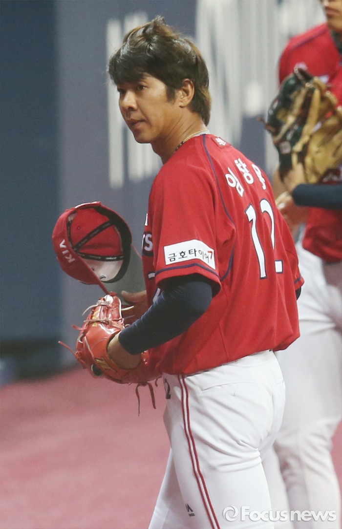 (서울=포커스뉴스) 1일 서울 고척 스카이돔에서 열린 2016 프로야구 KIA-넥센 경기 4회말 2사 1루에서 KIA 임창용이 도박 파문으로 인한 리그 50% 출장정지를 끝내고 등판해 넥센 김민성을 7구 만에 삼진 아웃시키고 덕아웃으로 들어가고 있다.