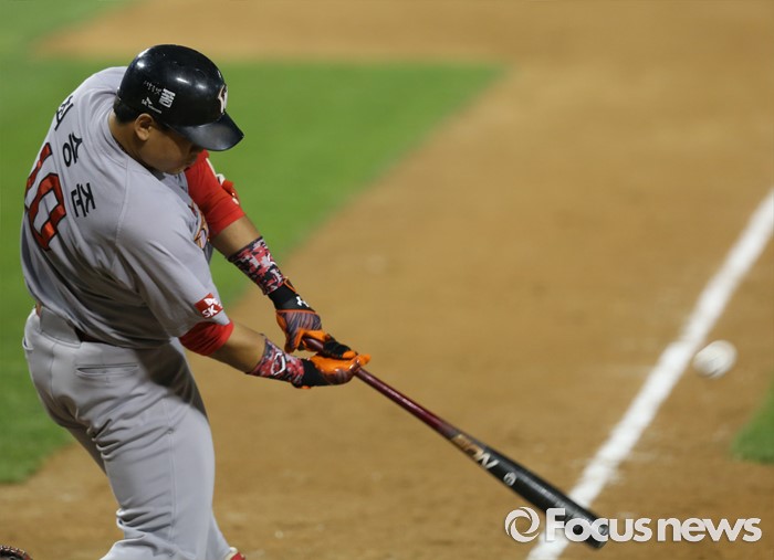 (서울=포커스뉴스) 3일 서울 잠실구장에서 열린 2016 프로야구 SK-LG 경기 8회초 1사 1루에서 SK 최승준이 우중월 2점 홈런을 날리고 있다.