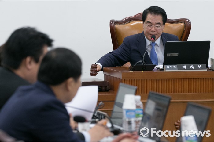 (서울=포커스뉴스) 4일 오전 서울 여의도 국회에서 열린 윤리특별위원회 전체회의에 참석한 백재현 위원장이 안건 의결을 하고 있다.