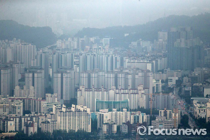 (서울=포커스뉴스) 4일 오후 서울 서초구에 아파트 단지가 보이고 있다. 이날 KB국민은행은 서울 주택 평균 매매가가 6월말 기준 5억 6000만원을 돌파했다고 밝혔다. 또, 서울 주택 평균 매매가가 5억원을 넘긴것은 2008년 조사 이후 이번이 처음이며, 강남권은 재건축의 영향으로 하반기 6억원을 넘어설 것으로 예상했다.