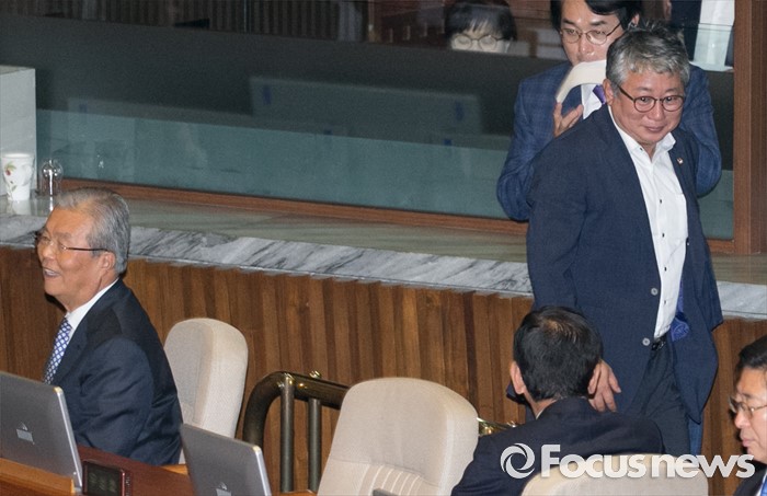 (서울=포커스뉴스) 4일 오후 서울 여의도 국회에서 열린 343회 국회(임시회) 6차 본회의, 경제에 관한 대정부 질문에 참석한 조응천 더불어민주당 의원이 본회의장을 나서고 있다. 왼쪽은 김종인 비대위 대표.