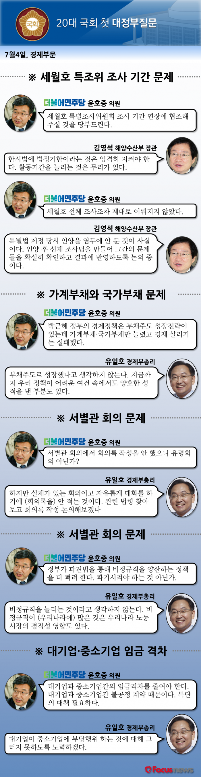 세월호 특조위 기간·국가부채·서별관 회의·파견법·임금격차 문제