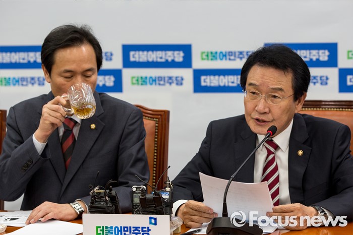 (서울=포커스뉴스) 변재일 더불어민주당 정책위의장이 5일 오전 서울 여의도 국회에서 열린 원내대책회의에 참석해 모두발언 하고 있다.