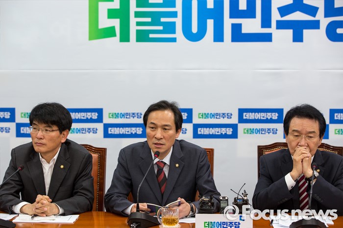(서울=포커스뉴스) 우상호 더불어민주당 원내대표가 5일 오전 서울 여의도 국회에서 열린 원내대책회의에 참석해 모두발언 하고 있다.