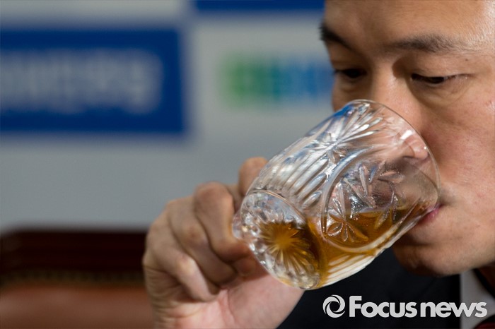 (서울=포커스뉴스) 우상호 더불어민주당 원내대표가 5일 오전 서울 여의도 국회에서 열린 원내대책회의에 참석해 모두발언을 마친 뒤 물 마시고 있다.