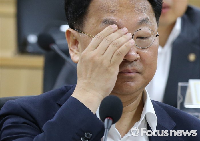 (세종=포커스뉴스) 유일호 경제부총리 겸 기획재정부장관이 5일 오전 서울-세종 영상회의로 열린 경제관계장관회의에 참석해 안경을 고쳐쓰고 있다.