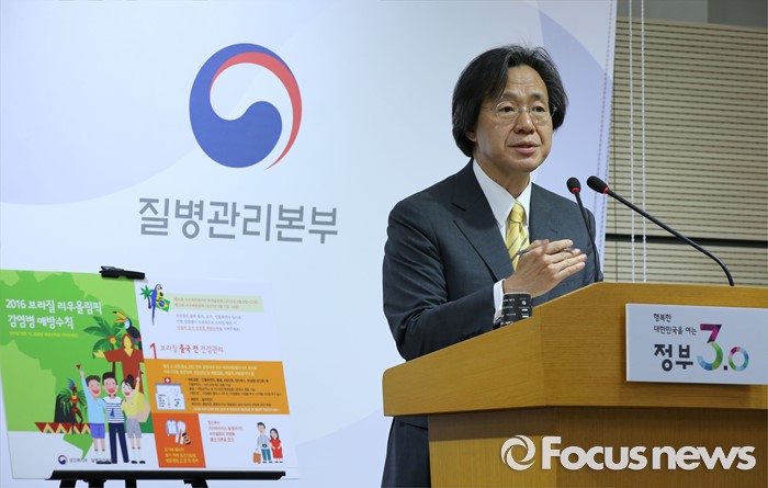 (세종=포커스뉴스) 정기석 질병관리본부장이 5일 오전 세종시 정부세종청사 보건복지부 브리핑룸에서 브리질 리우올림픽 감염병 대응 종합계획을 발표하고 있다.