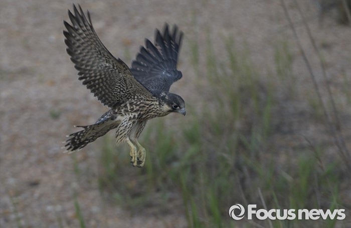 (인천=포커스뉴스) 송골매 어린 수컷이 수도권 매립지 들녘에서 먹잇감을 찾고 있다.