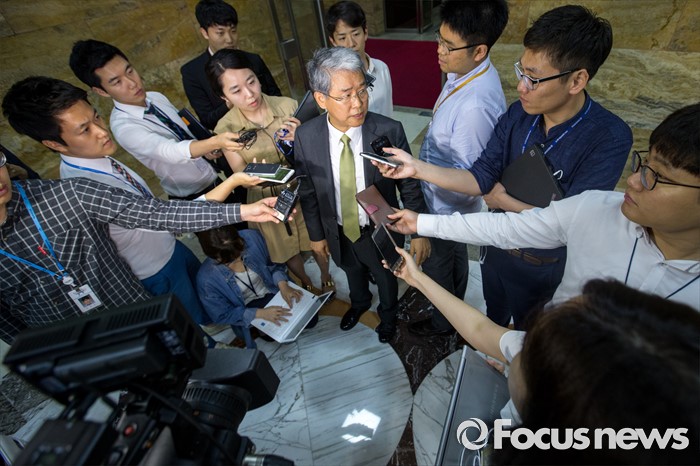 | △ 취재진에 둘러 싸인 김동철 국민의당 의원 |