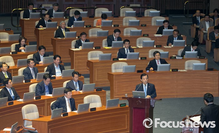 (서울=포커스뉴스) 5일 오전 서울 여의도 국회에서 열린 343회 국회(임시회) 7차 본회의, 정치·외교·통일·안보·교육·사회·문화에 관한 질문에 참석한 한민구 국방부 장관이 윤상현 새누리당 의원의 질문에 답하고 있다.