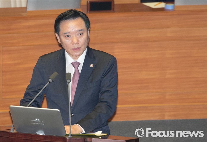 (서울=포커스뉴스) 5일 오전 서울 여의도 국회에서 열린 343회 국회(임시회) 7차 본회의, 정치·외교·통일·안보·교육·사회·문화에 관한 질문에 참석한 김현웅 법무부 장관이 박범계 더불어민주당 의원의 질문에 답하고 있다.