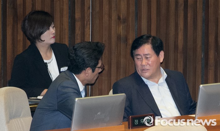 | △ 논의하는 최경환-정병국 |