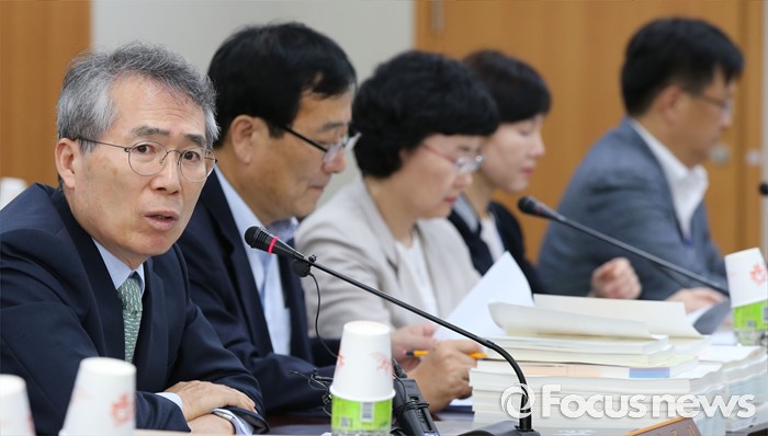 (세종=포커스뉴스) 5일 오후 세종시 정부세종청사 고용노동부 최저임금위원회에서 열린 제9차 전원회에서 박준성 위원장이 회의를 주재하고 있다.