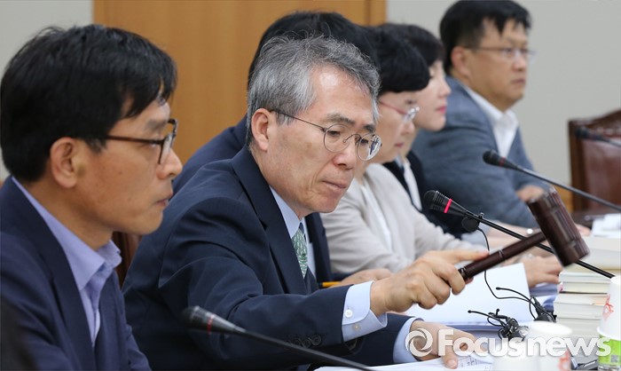 (세종=포커스뉴스) 5일 세종시 정부세종청사 고용노동부 최저임금위원회에서 열린 제9차 전원회에서 박준성 위원장이 회의 시작을 알리는 의사봉을 두드리고 있다.