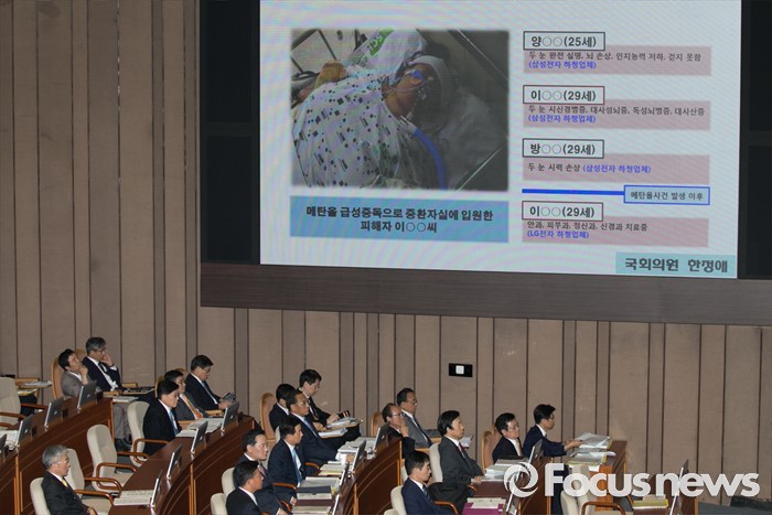(서울=포커스뉴스) 5일 오후 서울 여의도 국회에서 열린 343회 국회(임시회) 7차 본회의, 정치·외교·통일·안보·교육·사회·문화에 관한 질문에 참석한 한정애 더불어민주당 의원이 기업 하청업체 근로자들과 관련 황교안 국무총리에게 질문하고 있다.
