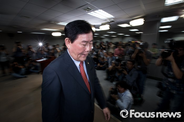 (서울=포커스뉴스) 최경환 새누리당 의원이 6일 오전 서울 여의도 국회에서 새누리당 당대표를 선출하는 전당대회 불출마 선언을 마친 뒤 기자회견장을 나서고 있다.