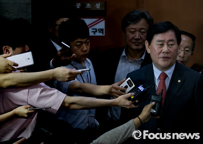 | △ 취재진 질문 답하는 최경환 |