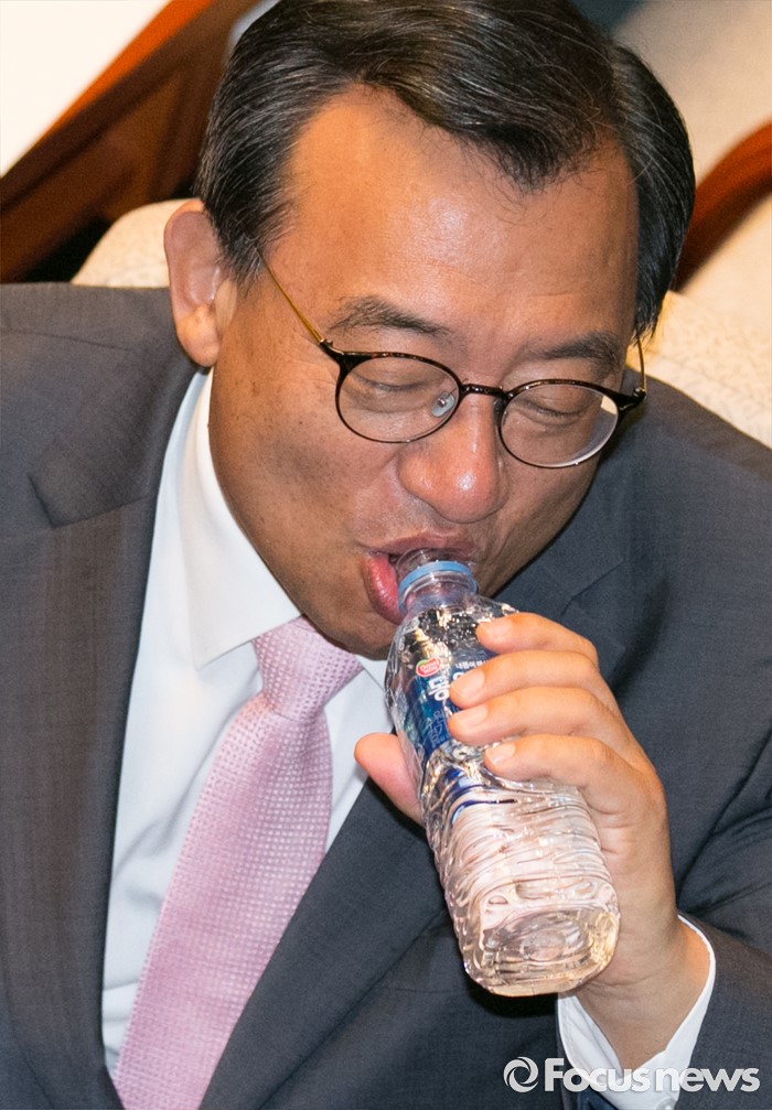 (서울=포커스뉴스) 6일 오전 서울 여의도 국회에서 열린 예산결산특별위원회 전체회의에 참석한 이정현 새누리당 의원이 물을 마시고 있다.