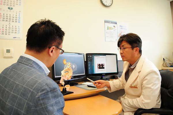 정병창 삼성서울병원 비뇨기과 교수는 “가뜩이나 까다로운 근치적 방광 적출술을 로봇으로 하려면 더욱 세밀하고 정교한 접근이 필요하지만 그만큼 환자에게는 이득이 많다”며 “앞으로도 환자에게 보다 안전하고 효과 있는 술기를 적용하기 위해 연구와 개발에 매진해 나갈 것”이라고 전했다.삼성서울병원 정병창 교수가 방광암 환자에게 수술 관련 설명을 하고 있다. <사진출처=삼성서울병원>