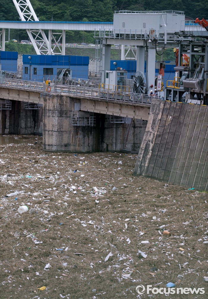 (남양주=포커스뉴스) 서울과 수도권 지역의 장마전선이 소강상태를 보이고 있는 6일 오전 경기도 남양주 팔당댐에 많은 부유물들이 떠내려와 있다.