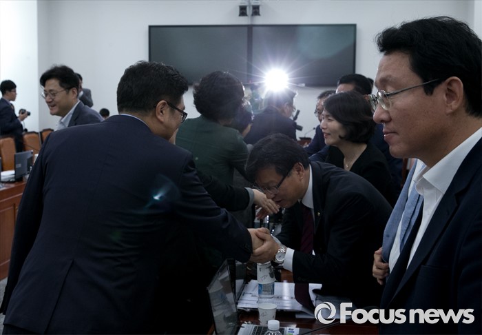 (서울=포커스뉴스) 6일 오후 서울 여의도 국회에서 열린 가습기살균제 사고 진상규명과 피해구제 및 재발방지 대책마련을 위한 국정조사특별위원회 전체회의에 참석한 여야 의원들이 인사하고 있다.