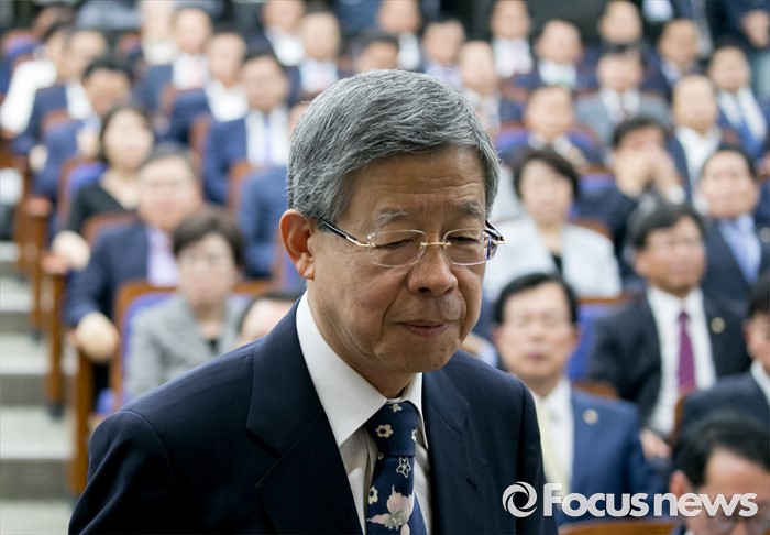 (서울=포커스뉴스) 6일 오후 서울 여의도 국회에서 열린 새누리당 의원총회에 김희옥 혁신비대위원장이 모두발언을 위해 단상으로 향하고 있다.